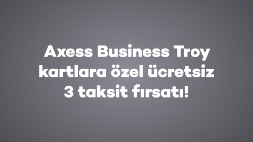 Axess Business Troy kartınızla yapacağınız 20.000 TL – 2.000.000 TL arası peşin alışverişlerde faizsiz/ücretsiz 3 taksit!